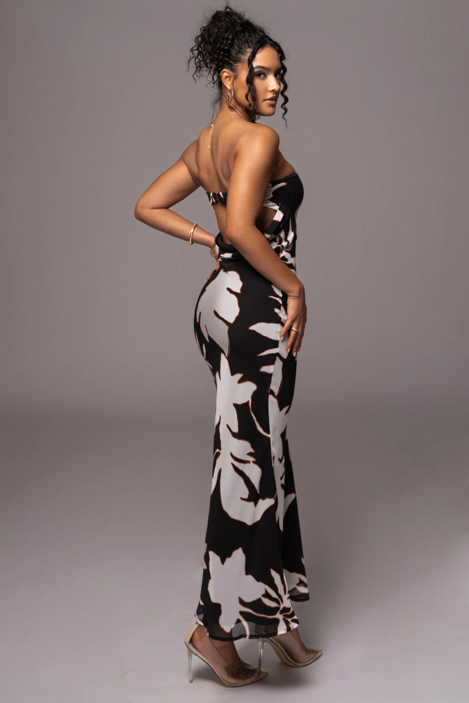 Radiate on all angles with our new Ivory Break Free Strapless Maxi Dress. This beautiful maxi design features a strapless neckline with a stylish hook back closure and a flattering silhouette that falls effortlessly around your curves. Carefully constructed in a luxurious chiffon fabric graced with a dreamy and everlasting floral pattern. Lined interior. No stretch.