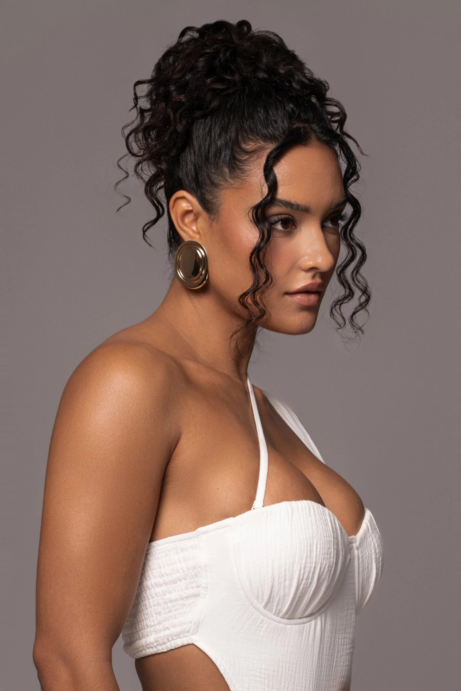 Make a lasting impression this summer in the Natural Scenic One-Shoulder Linen Bodysuit. This smocked bodysuit offers an air of sophistication with its one shoulder neckline, ruched/padded cups, and double snap closure at the bottom for a secure fit. The lower waist of this bodysuit is composed of a smooth doubled lined material for comfort. Pair with our