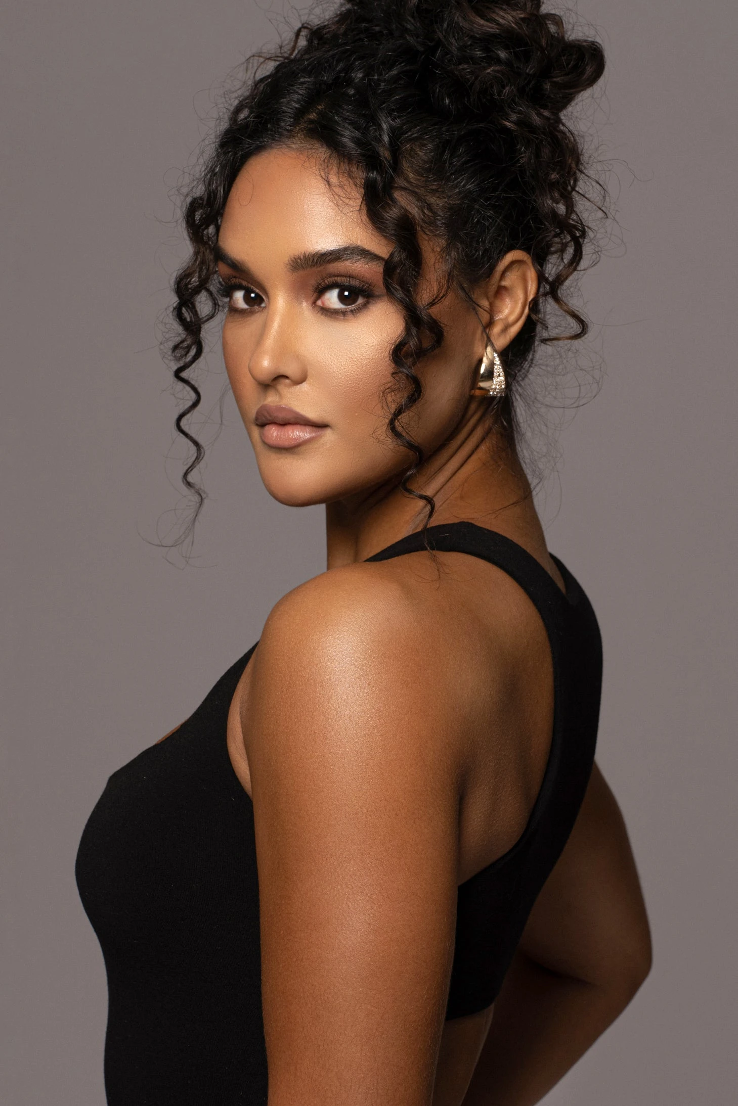 Smooth to the touch in the Noir Brianne Cutout Bodysuit. Featured in a soft double-lined fabrication with a scoop neckline, tank shoulders, and a open back detailing an adjustable waist strap for an extra cinched fit. Thong-back bottom with double snap closures. Stretchy.