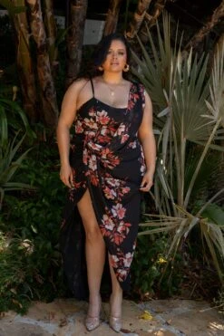 Indulge in the beauty of our Red Floral Dream Chiffon Dress, where every detail is a testament to elegance. This lovely dress features a one-shoulder neckline with a corset style design while a captivating drape detail accentuates the lower waist, accompanied by a side slit for added allure. Crafted in fresh chiffon, our dress is enriched with floral accents, adding an extra touch of beauty. Complete with adjustable shoulder straps. Lined interior.