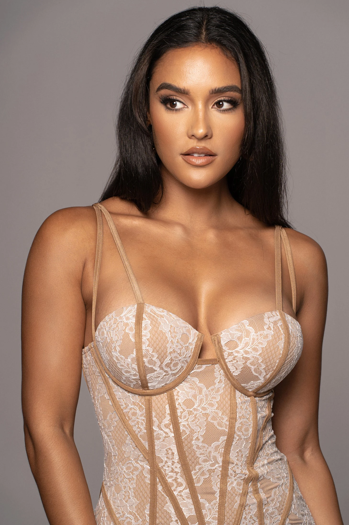 Lovely in lace with our White Katerina Lace Dress. This gorgeous curve-hugging dress features a sweetheart neckline with a bustier style bodice, and a back slit at the lower hem. Stunning piping detail throughout elevates the glamour of this midi length dress, complete with adjustable shoulder straps and back zipper for closure. Gold tone accents. Lined interior. Some stretch.